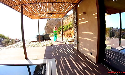 फ़ेलिशिया तिपतिया घास बड़े स्तन लाल बालों वाली लड़की पूल द्वारा प्रवेश
