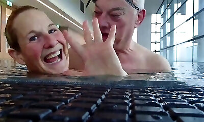 मौखिक खुशी और हुक-अप में पूल, दोहरी सह शॉट-शौकिया घर का बना