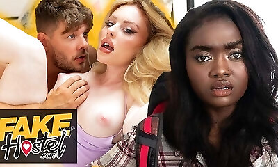 Faux Hostel - PAWG steals Ebony babes BWC cheating boyfriend for hardcore sneaky sex fun