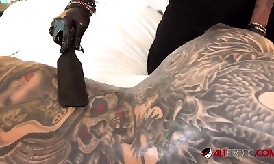 Tattooed breezy with good-sized tits gets her anus fucked hard like never before