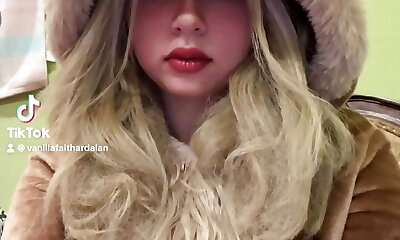 Teen sexy doll with huge boobs masturbates in her jacket