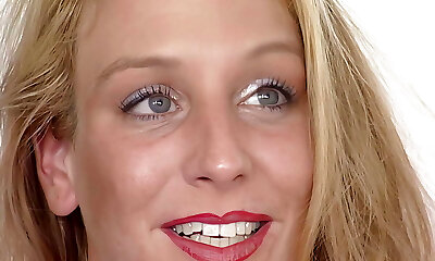 Observe this cute tall blonde teenage with 32D cup titties make her porn debut