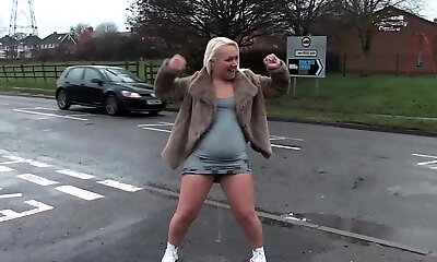 Plump blondie pissing outdoors