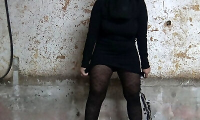 pissing in a pantyhose pussy with a hairy twat