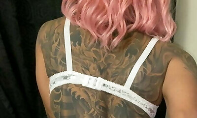 Tattooed emo chick enjoys fellating huge dick and gets fucked doggy fashion
